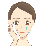 手のひらに保湿液・美容液をのせ、お顔全体につけていきましょう。