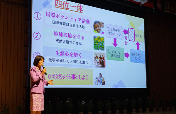 2日目は糸谷社長によるエルセラーンポリシー「四位一体」の解説やボランティアを支える商品の紹介など