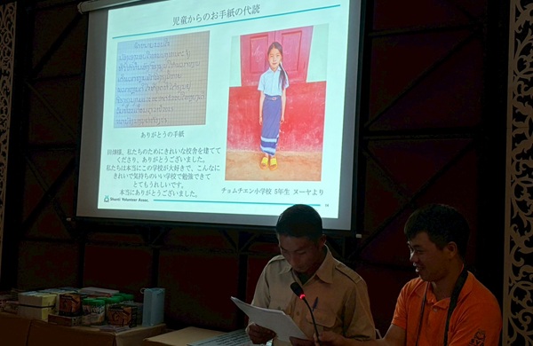 さらに児童たちの授業の様子やエルセラーンメンバーへの感謝のお手紙をビデオで紹介し、一行を感動させました。