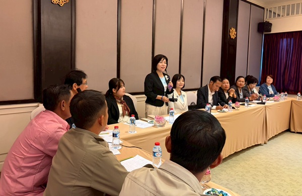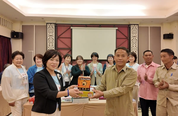 交流会は田畑小学校でおこなう予定でしたが異常気象の影響で雨季が長引き、泥道を車が通行できなかったため、急遽、郡知事や村長、校長、教員ら田畑小関係者がルアンパバーン市内の宿泊ホテルへ出張して実現しました。
