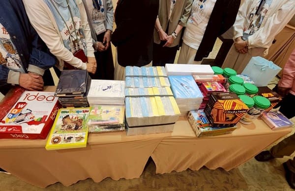 エルセラーンから児童に対して学用品や運動用具、手作りの遊具をプレゼント。