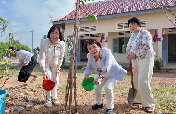 校舎前では記念の植樹もおこない、子どもたちが未来に向けて大きく羽ばたいていきますようにと願いを込めました。