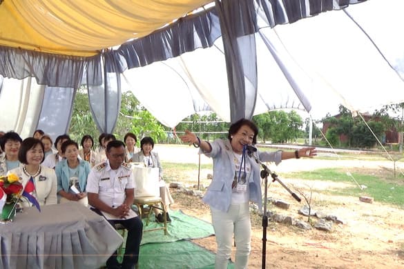 来賓や生徒、教職員、保護者らと2年ぶりに再会しました。現地の方々から日本語で迎えられたことへの感謝と、校舎が大切に使われていることへの喜びを述べました。エルセラーン化粧品では、収益の一部をボランティア活動に充て、アジア各国で学校や図書館の建設を支援していることを紹介しました。生徒たちには、学びや友人との時間を大切にし、勉強と遊びを通して豊かな人生を歩んでほしいとエールを送り、日本から応援していると伝えました。また、この日は多くのプレゼントを用意し、子どもたちと一緒に楽しい思い出をつくりたいと語りました。