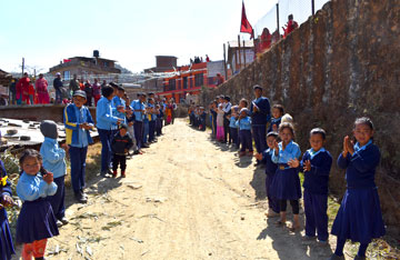 「日本のエルセラーンのみなさん、遠いところから私たちのことを思ってくださって、ここまで足を運んでくださり、ありがとうございます。この学校の生徒として、とても嬉しいです。5年前の地震でこの学校は大きな被害を受けました。地震後、トタン板を組み合わせただけの簡素な仮設校舎で勉強していた私たちにとって、日本からの支援で新校舎ができることが楽しみでした。私たちは学校ができていく様子をずっと見ていました。しかし、大雨による地滑りで使えなくなったことがわかりました。新校舎の完成をワクワクしていたあのときの喜びは、忘れることができません。一日も早くあの学校で勉強したいです。日本のみなさんがネパールのこの地域の教育水準の向上にご協力いただいたことに、本当に感謝しています。これからも日本のみなさんと交流を深めたいと思っています」
