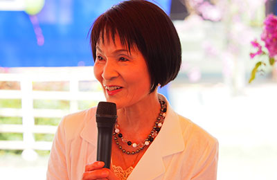 エルセラーン化粧品 教育部 久保知子部長がエルセラーン1%クラブ石橋勝代表(当時)のメッセージを代読