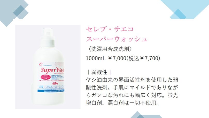 セレブサエコシリーズのお洗濯にはスーパーウォッシュがおすすめです