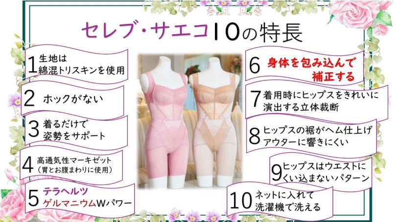 セレブ・サエコの特長をご紹介いたします。