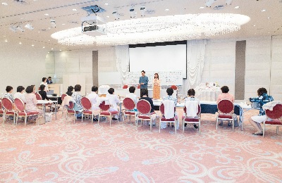 「ホテルエルセラーン大阪」で勉強会に参加していたボランティアキャプテンの皆様に、東海TVディレクターと国生アナウンサーからご挨拶。